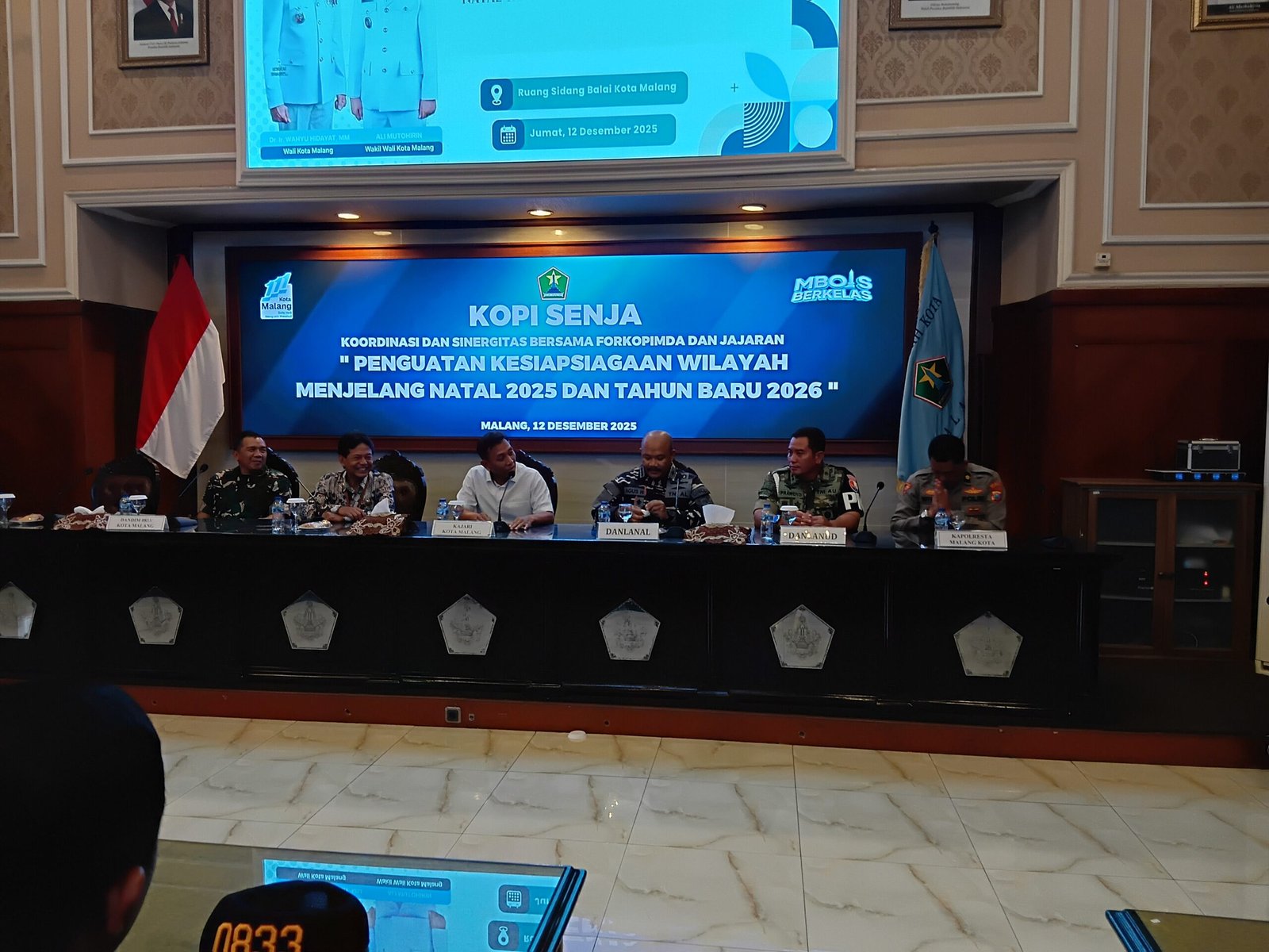 Pemerintah Kota Malang melalui Badan Kesatuan Bangsa dan Politik (Bakesbangpol) menggelar koordinasi bertajuk “Kopi Senja” di Ruang Sidang Balaikota Malang pada Jumat, 12 Desember 2025.